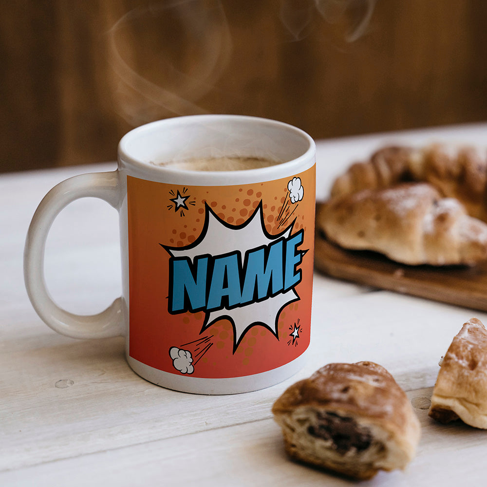 Orange Comic Book Style Personalised Mug