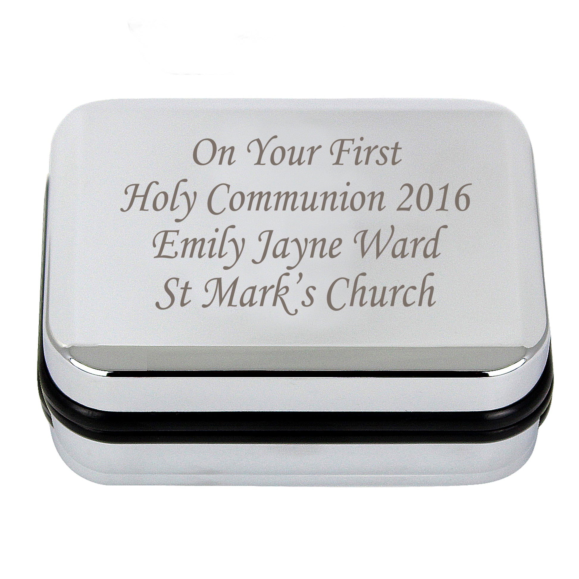This beautiful silver cross necklace comes in a chrome gift box which can be engraved with any message over 4 lines, with 20 characters per line.