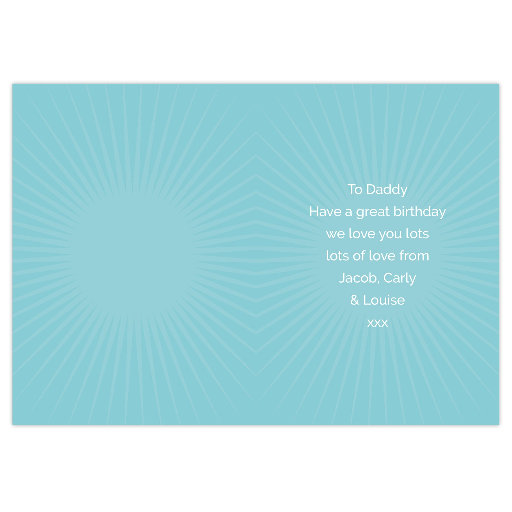 The inside of the card can be personalised with 7 lines of text up to 25 characters per line