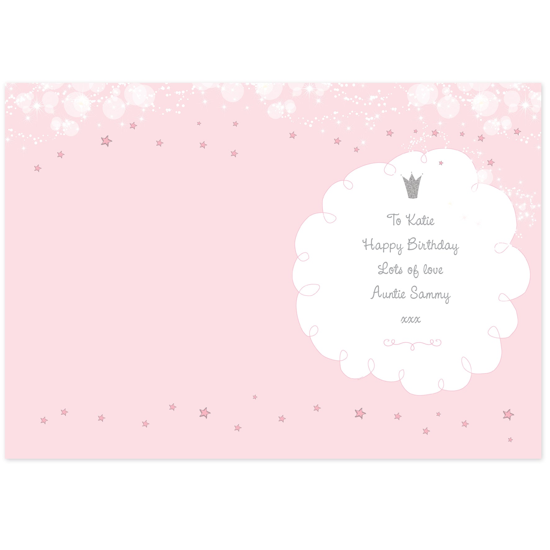 The front of this card can be personalised with 2 lines of text with up to 15 characters per line. The inside of the card can be personalised with a messages over 5 lines of text with up to 25 characters per line.