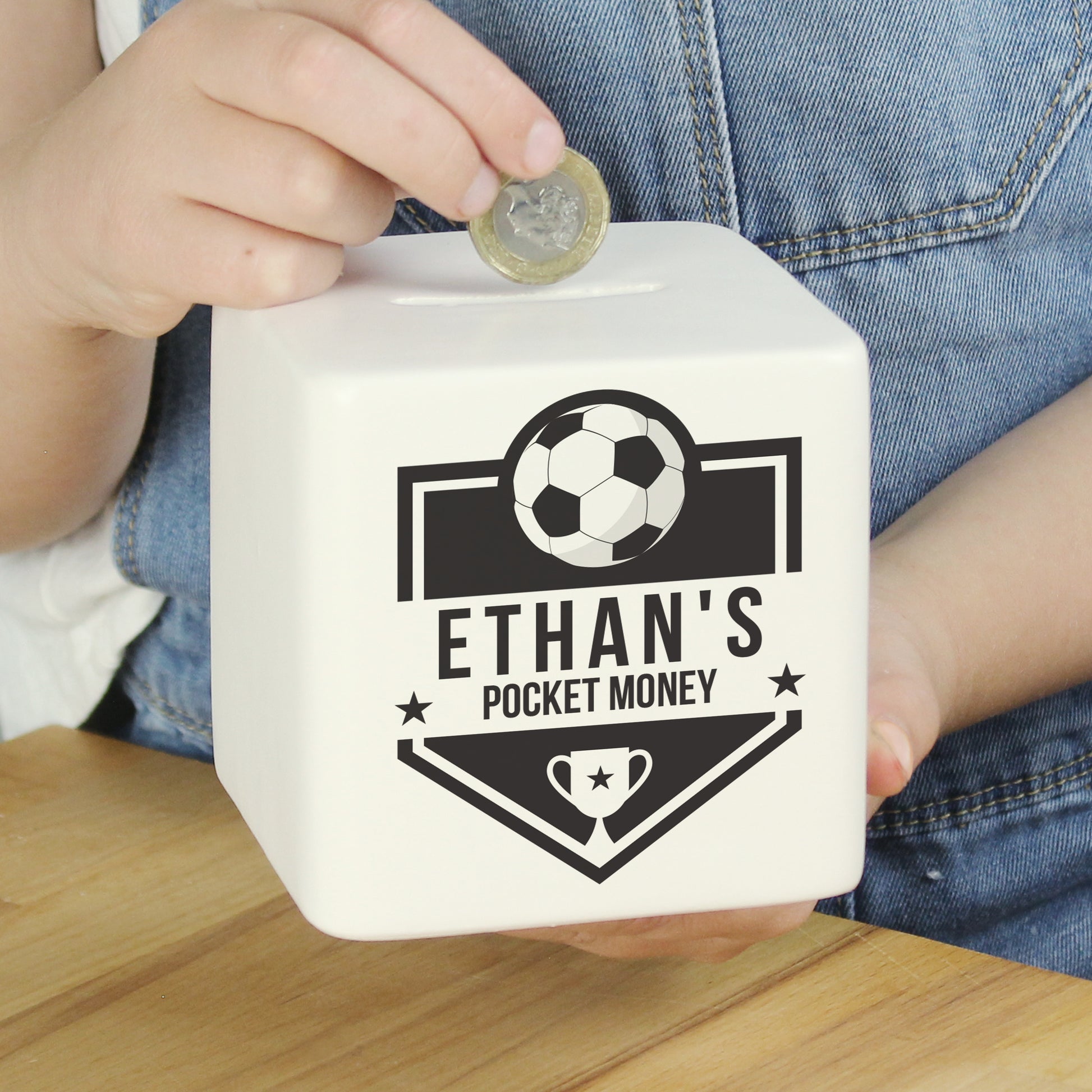 Our Personalised Football Badge Square Money Box makes the perfect keepsake for any occasion.