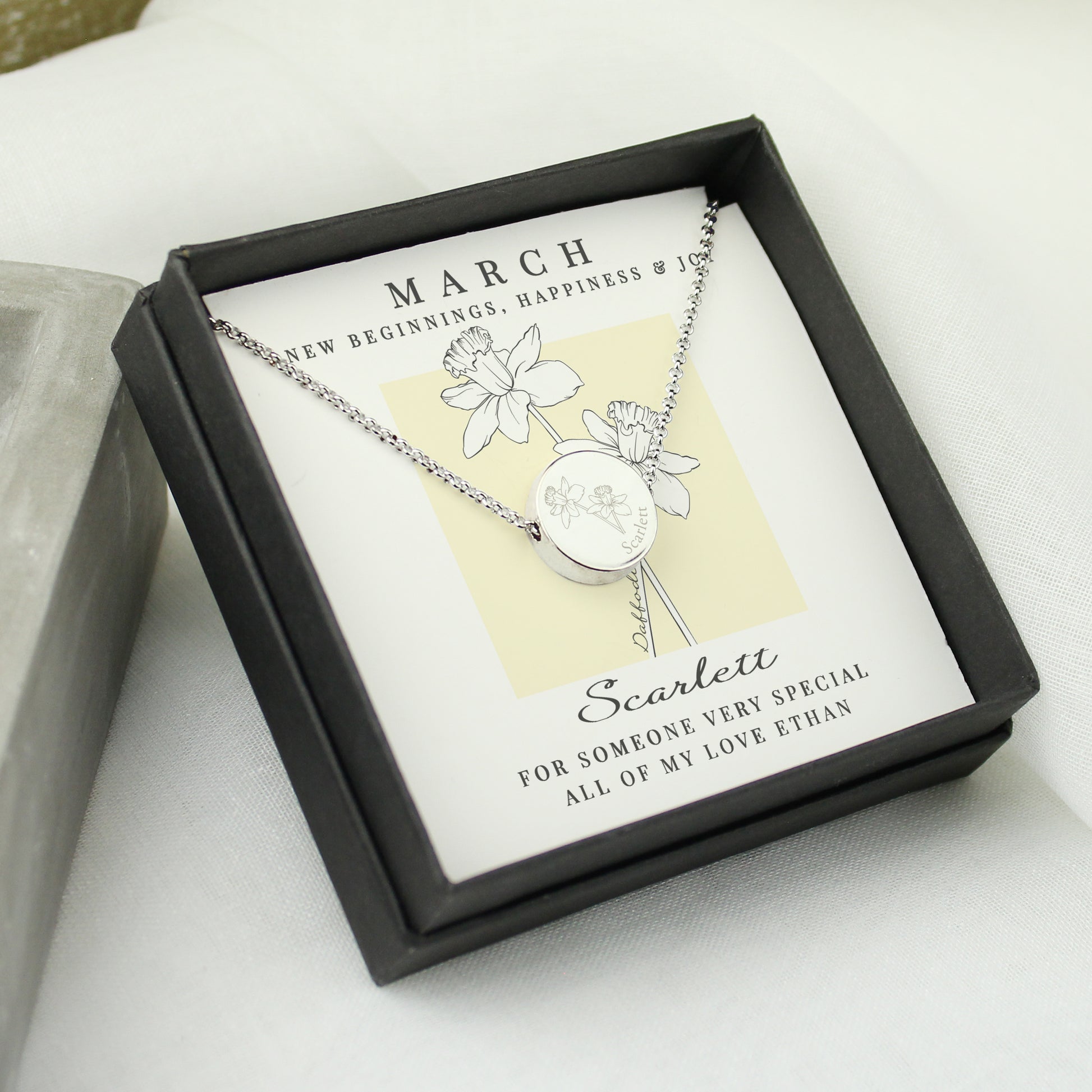 This March Birth flower necklace and box makes the perfect gift for any occasion.