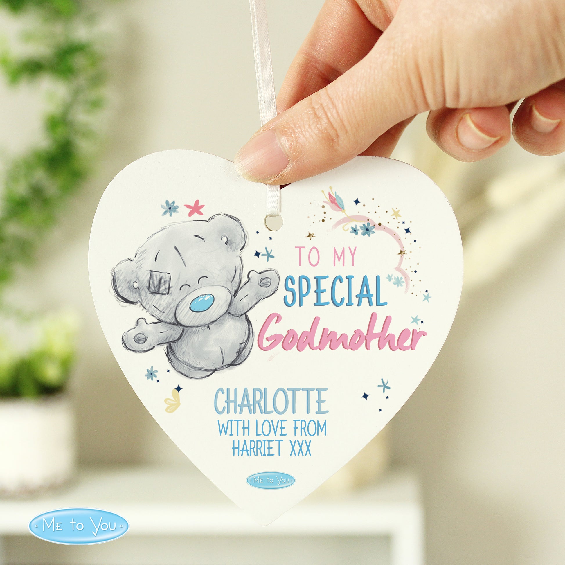 Show your gratitude to a special Godmother with this Personalised Me to You Godmother Wooden Heart Decoration.