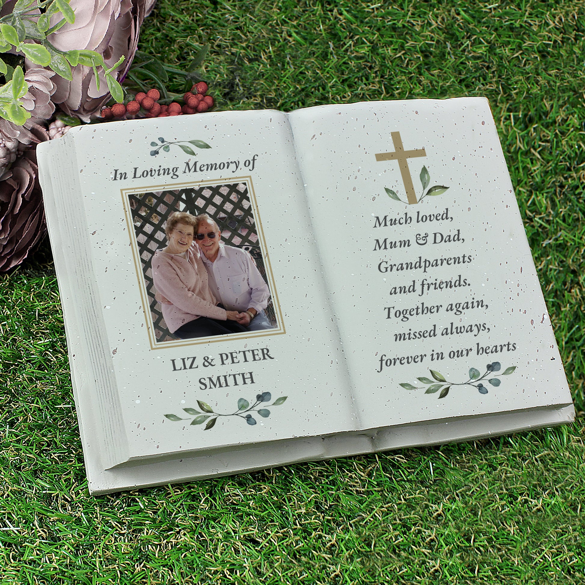 Personalise this Personalised Memorial Cross Photo Upload Resin Book with an email to upload you photo on and a personalised message, as below: