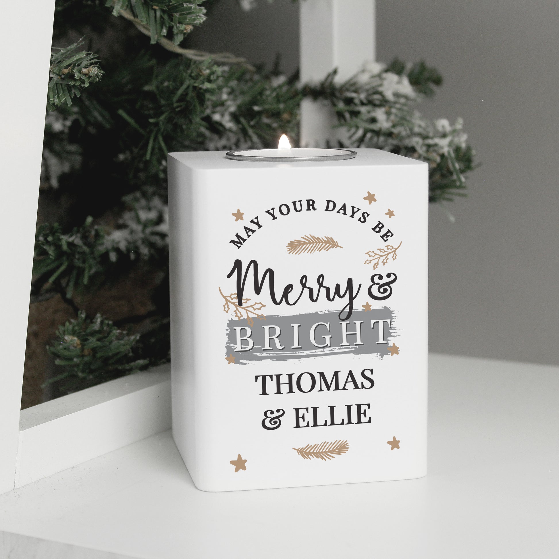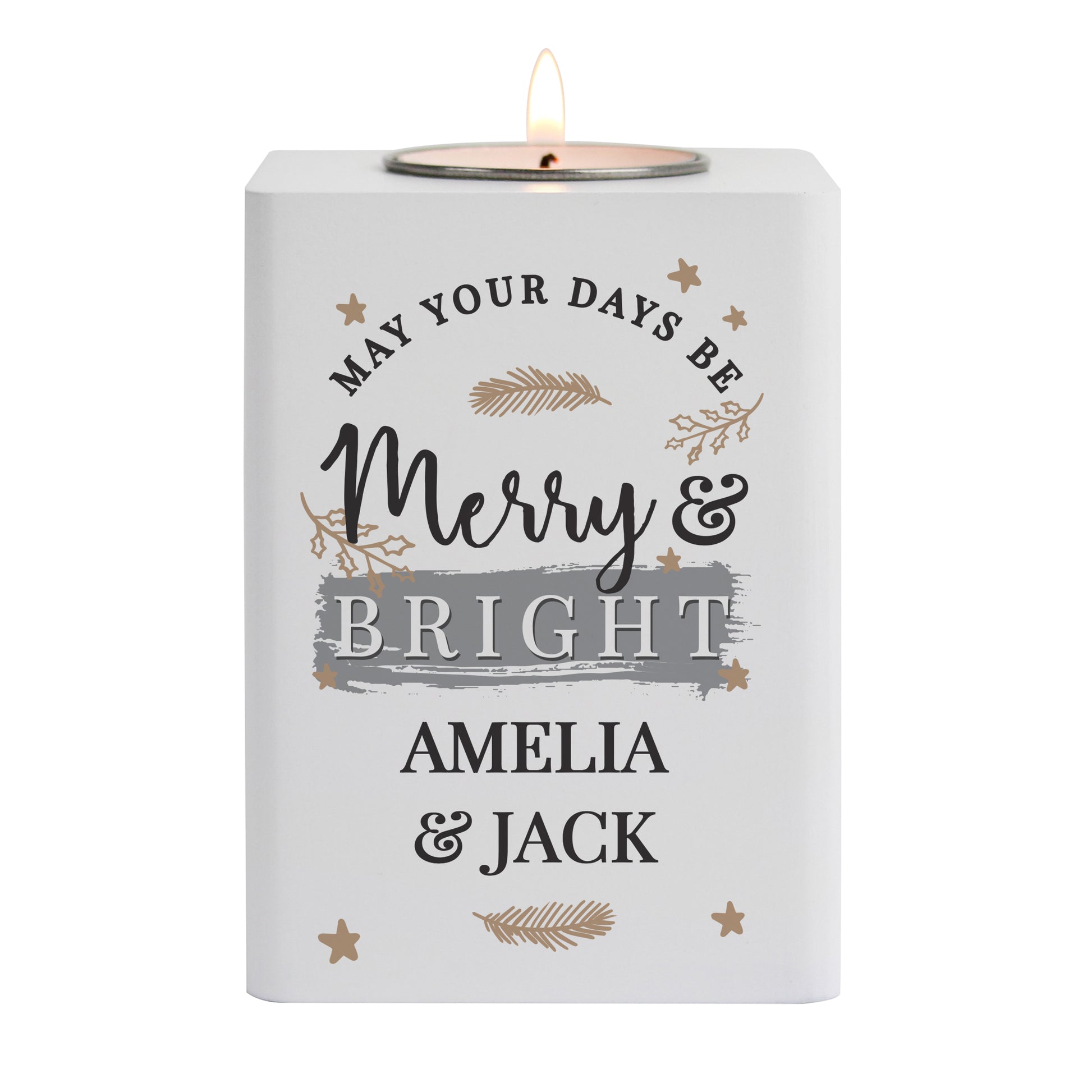 Personalise this white wooden tea light holder with up to 2 lines with up to 15 characters available per line.
