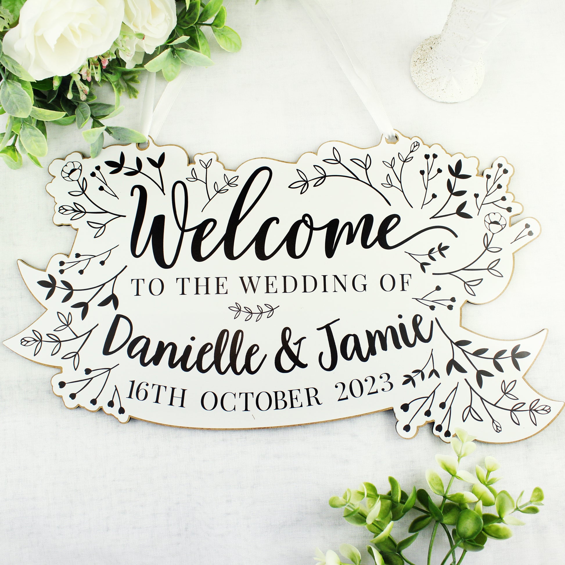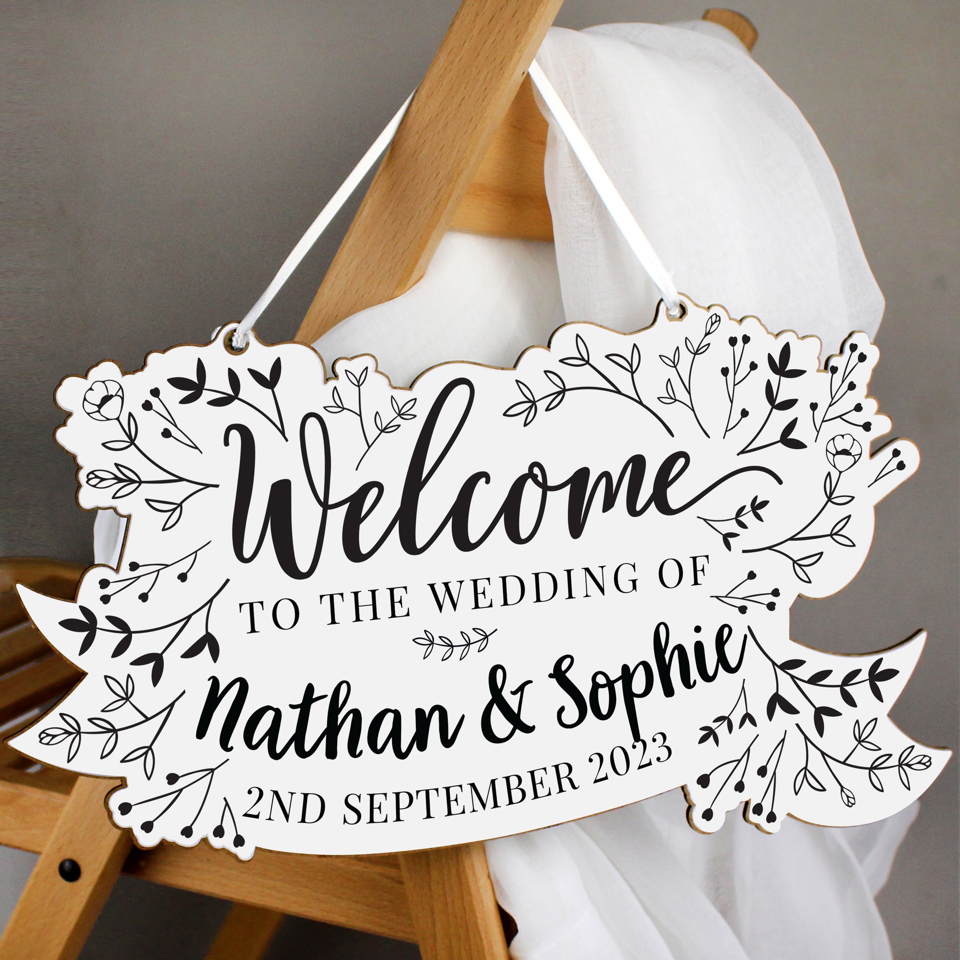 Personalised Monochrome Floral Wedding Wooden Hanging Decoration