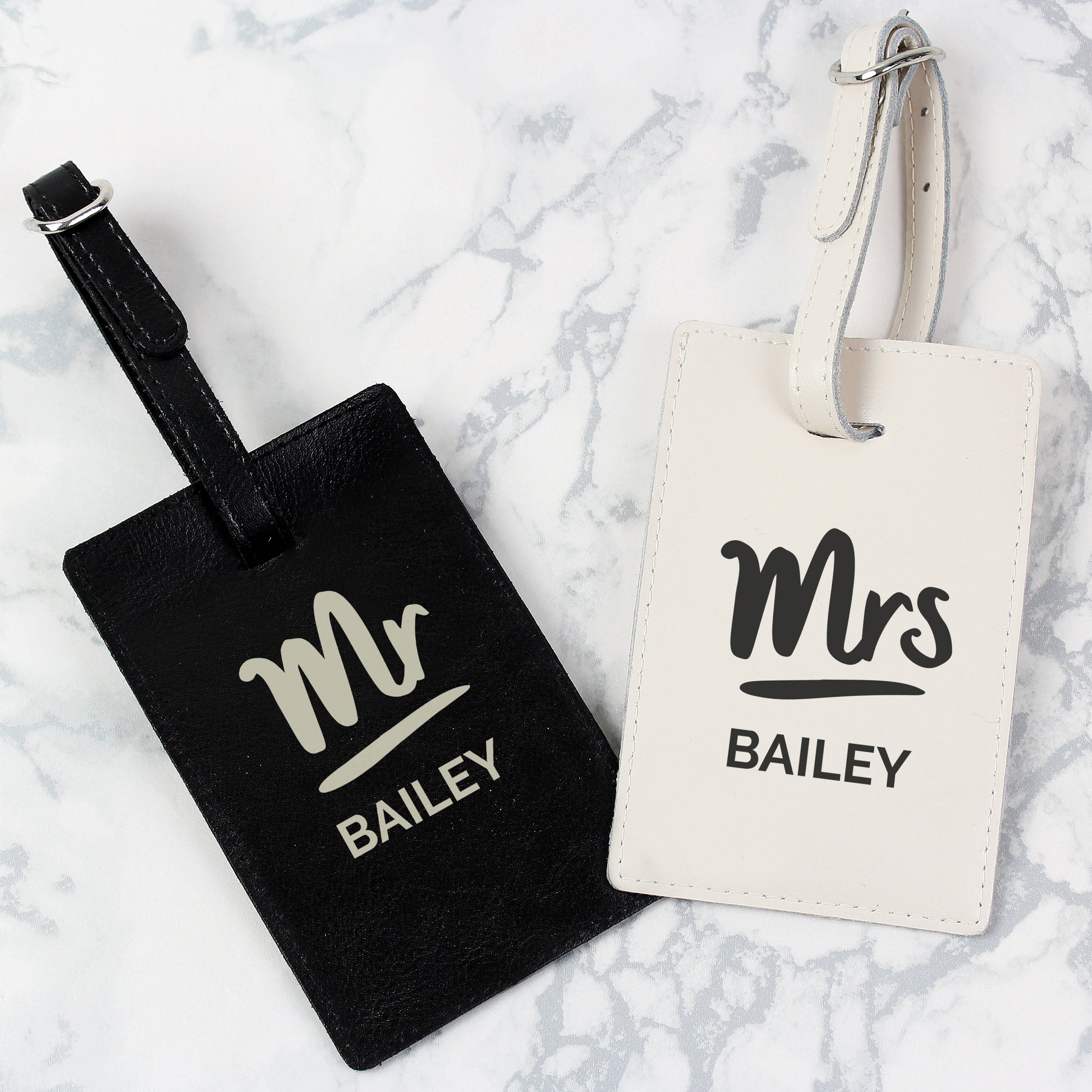 Our personalised Couples cream and black luggage tags are the perfect way to set off for a honeymoon in style.