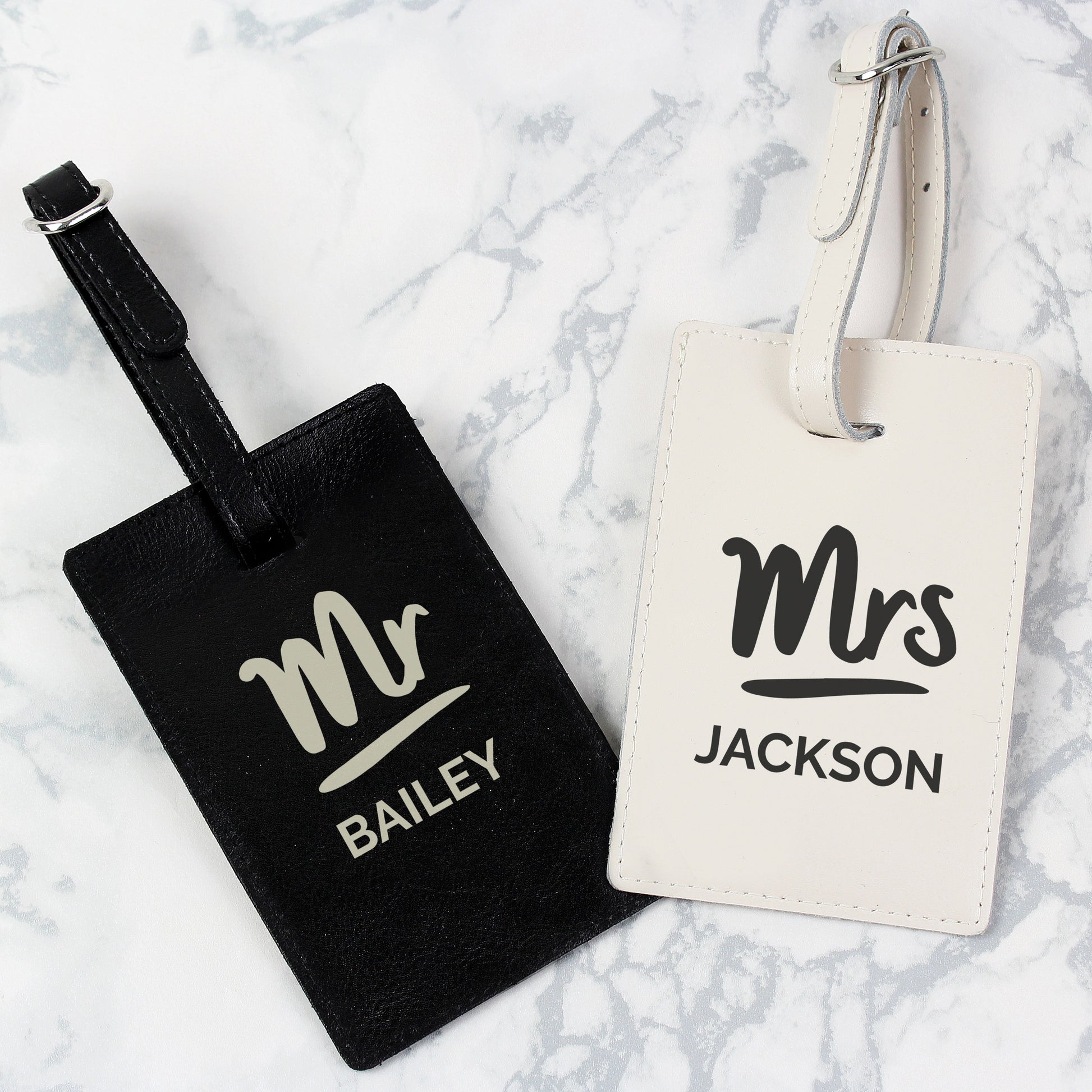 Personalised Mr & Mrs Black & Cream Luggage Tag Set