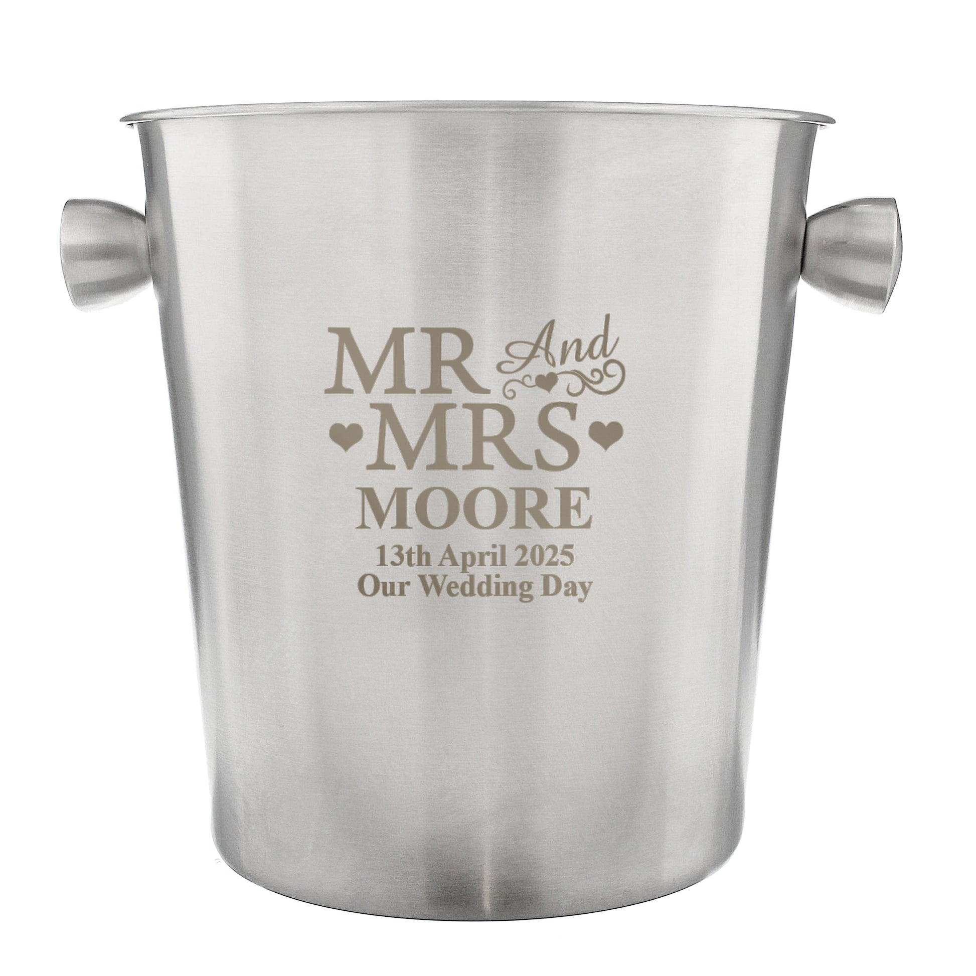 Personalised Mr & Mrs Stainless Steel Ice Bucket
