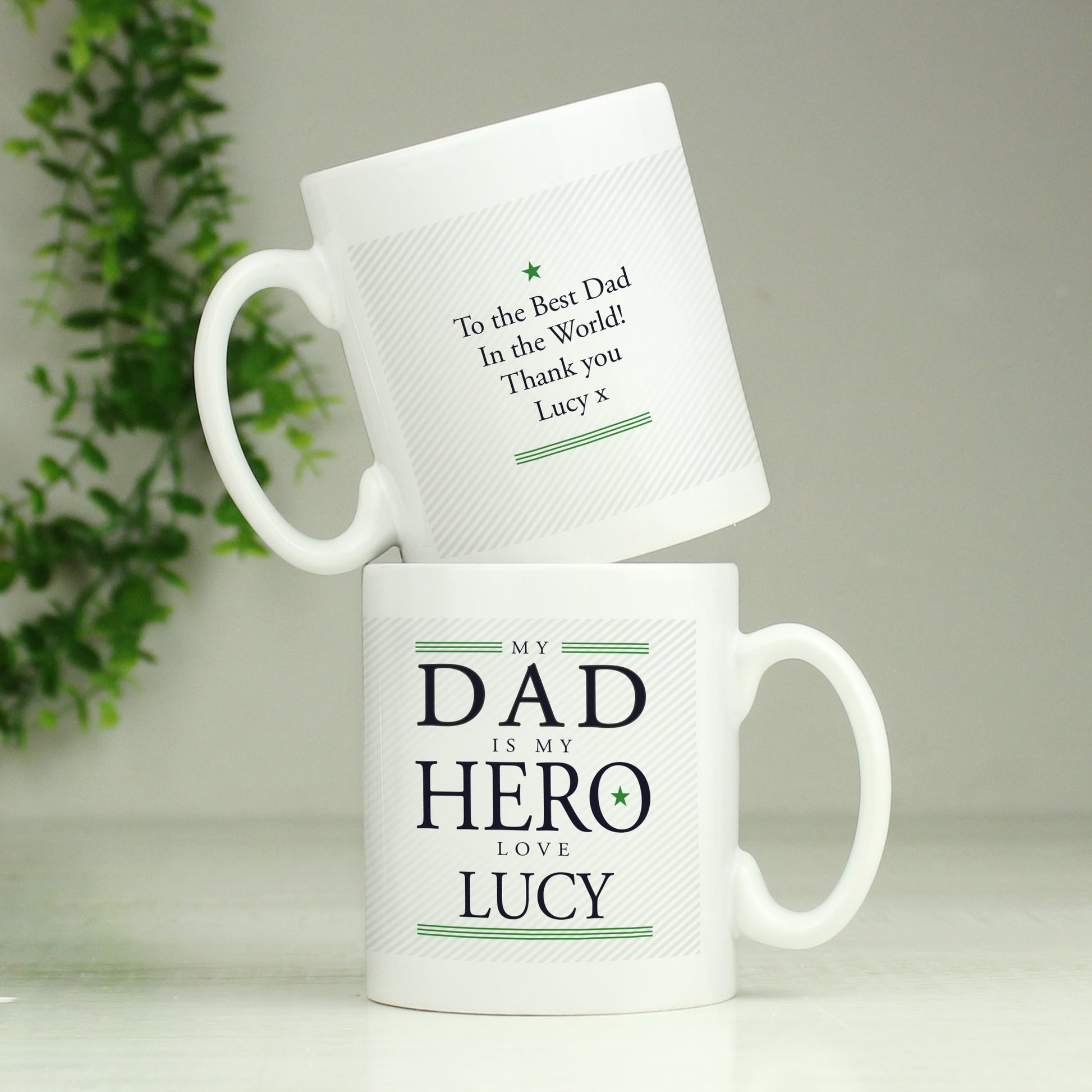 Personalise the front of this Hero Dad mug with a name up to 12 characters and a message on the reverse over 4 lines of up to 20 characters. Line 1 will appear in fixed UPPERCASE the remainder of the personalisation will appear as entered and is case sensitive.