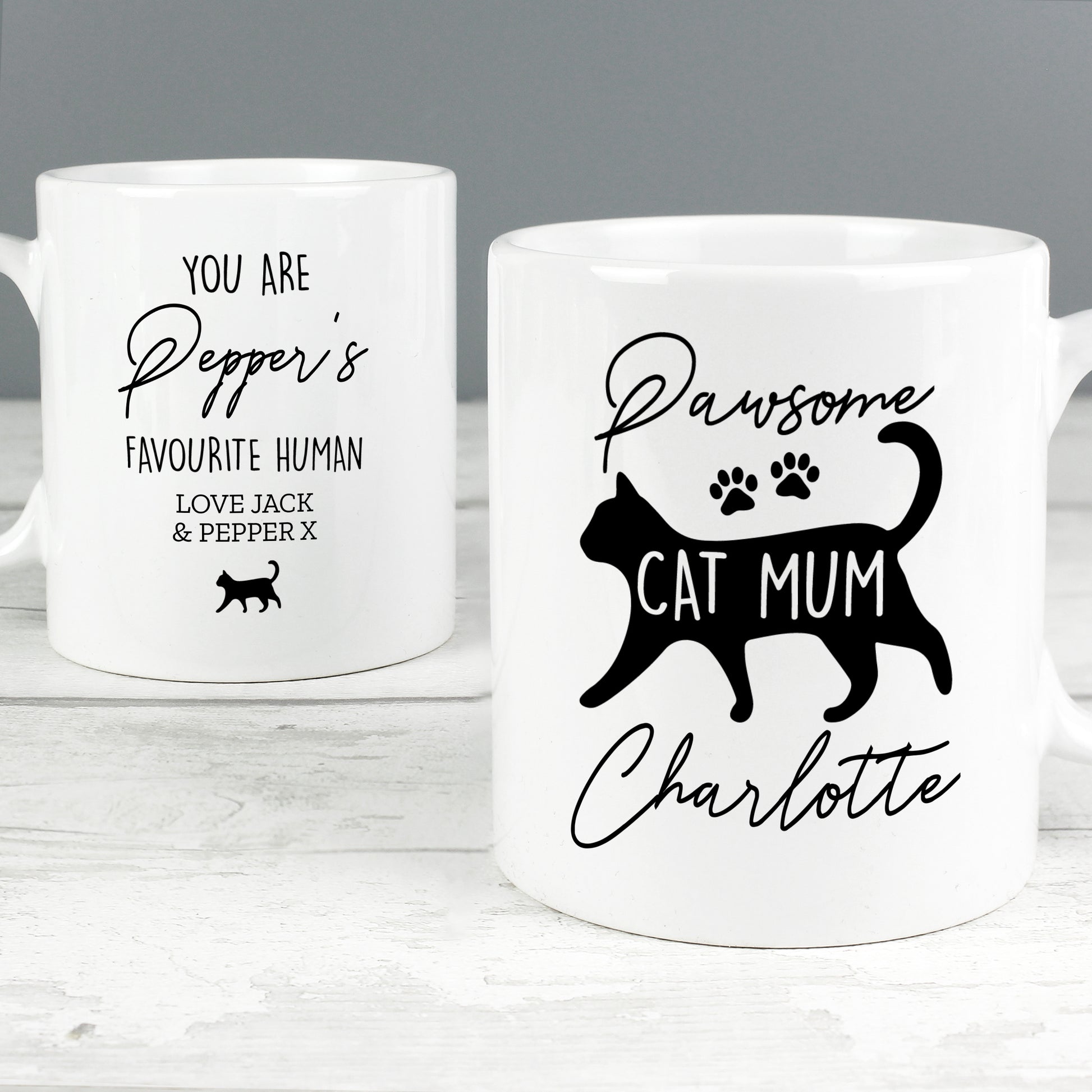 This cute personalised cat mum mug is a lovely gift from the cat to their mum, after all pets are children too!