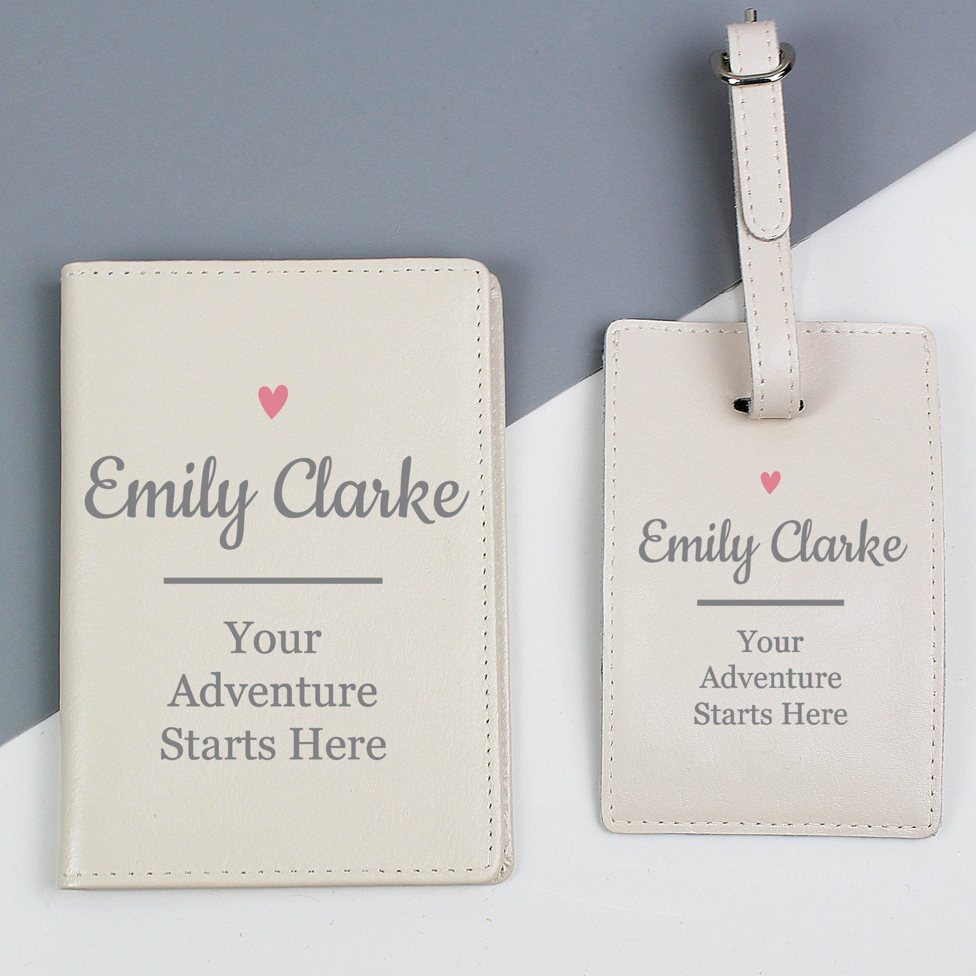 Personalised Pink Heart Cream Passport Holder & Luggage Tag Set