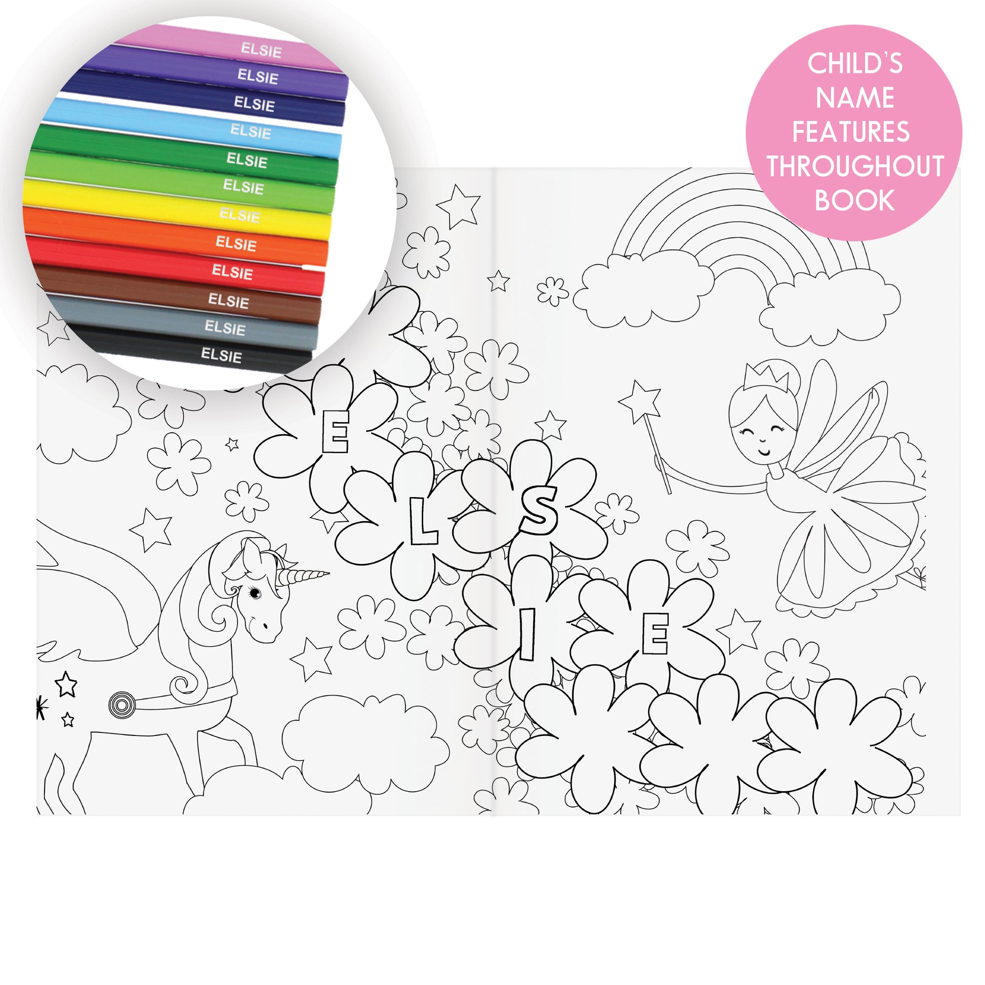 Personalised Princess & Unicorn Colouring Book with Pencil Crayons