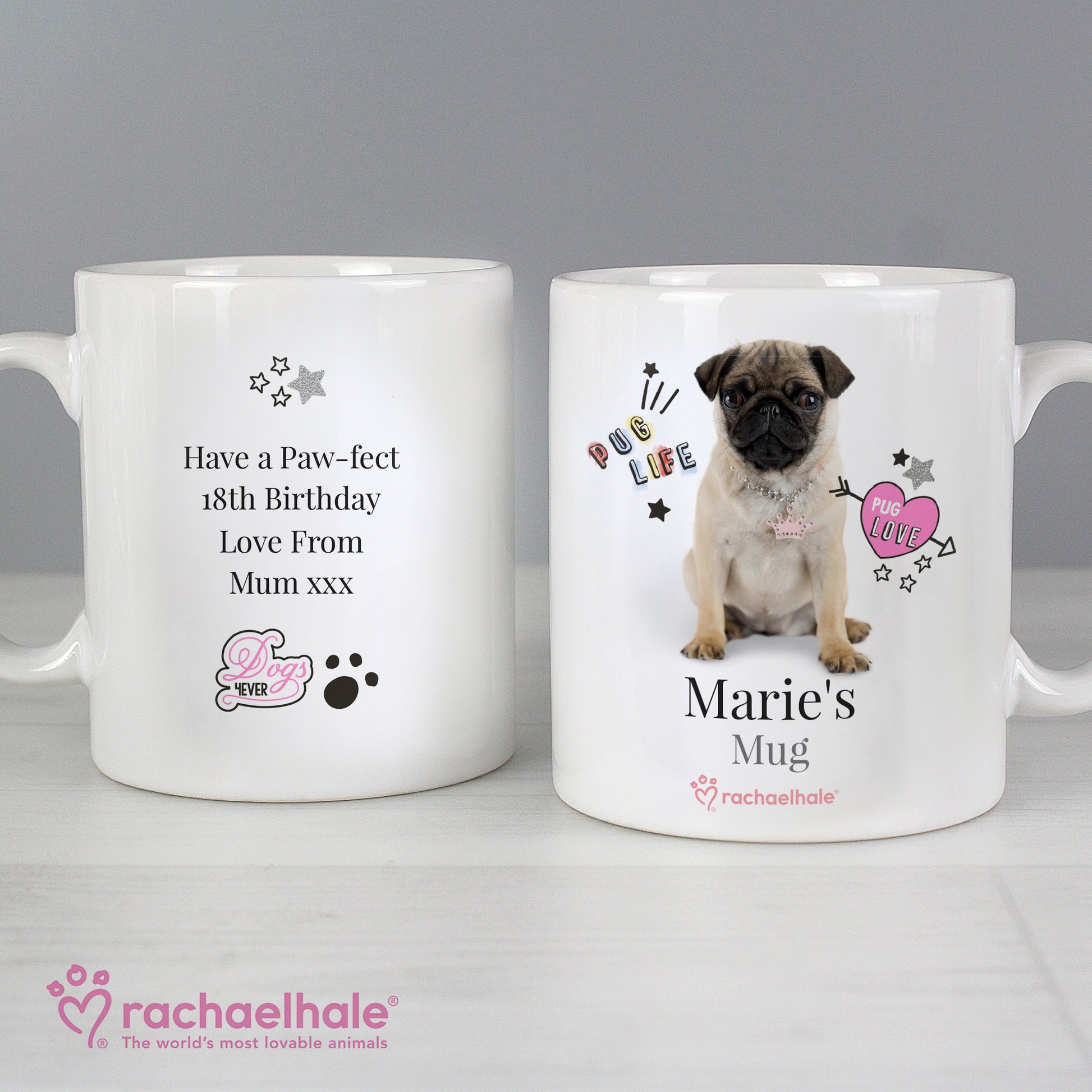 Share your love of pugs with this stylish Personalised Rachael Hale Doodle Pug Mug!