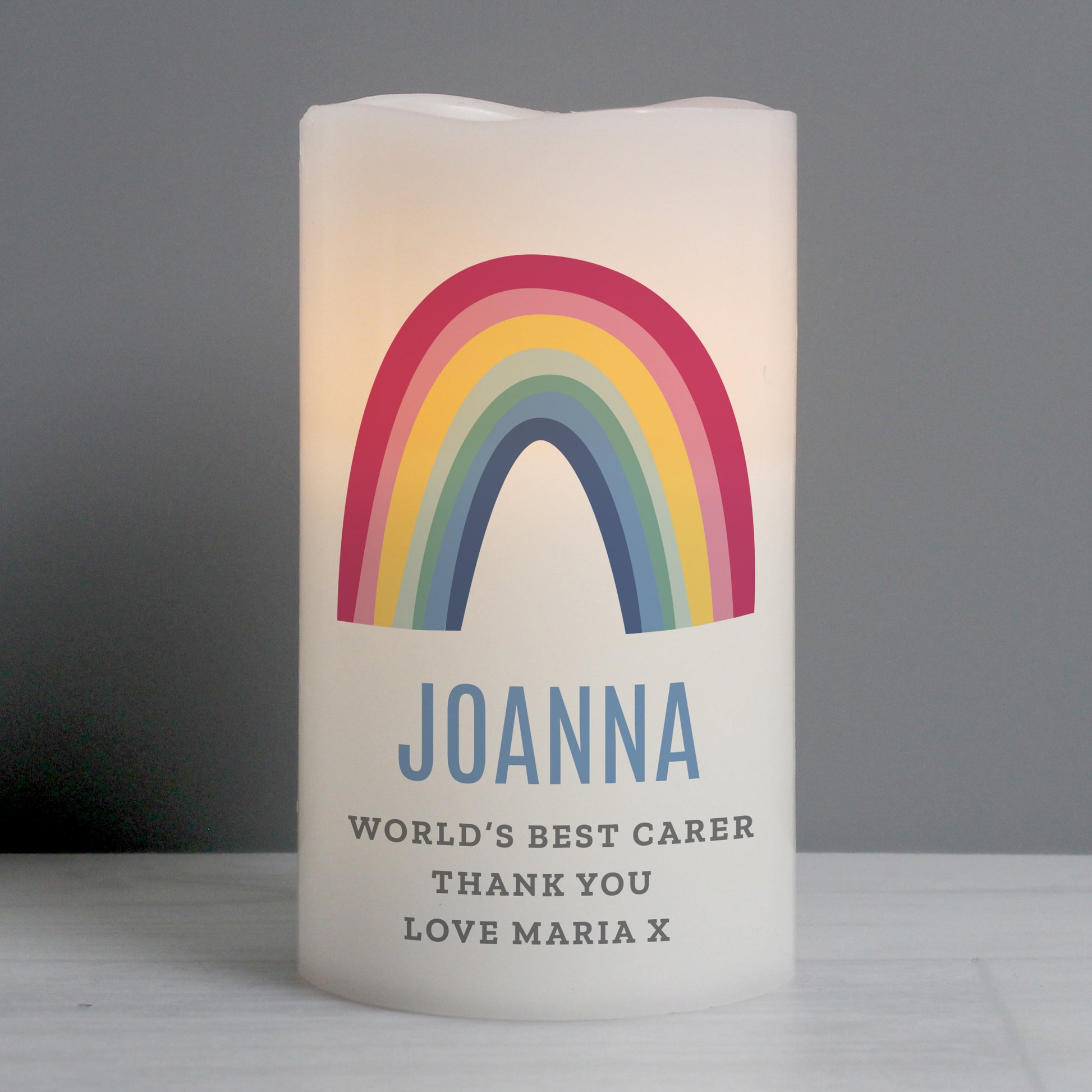This Personalised Rainbow LED Candle is a perfect gift to give on any occasion.