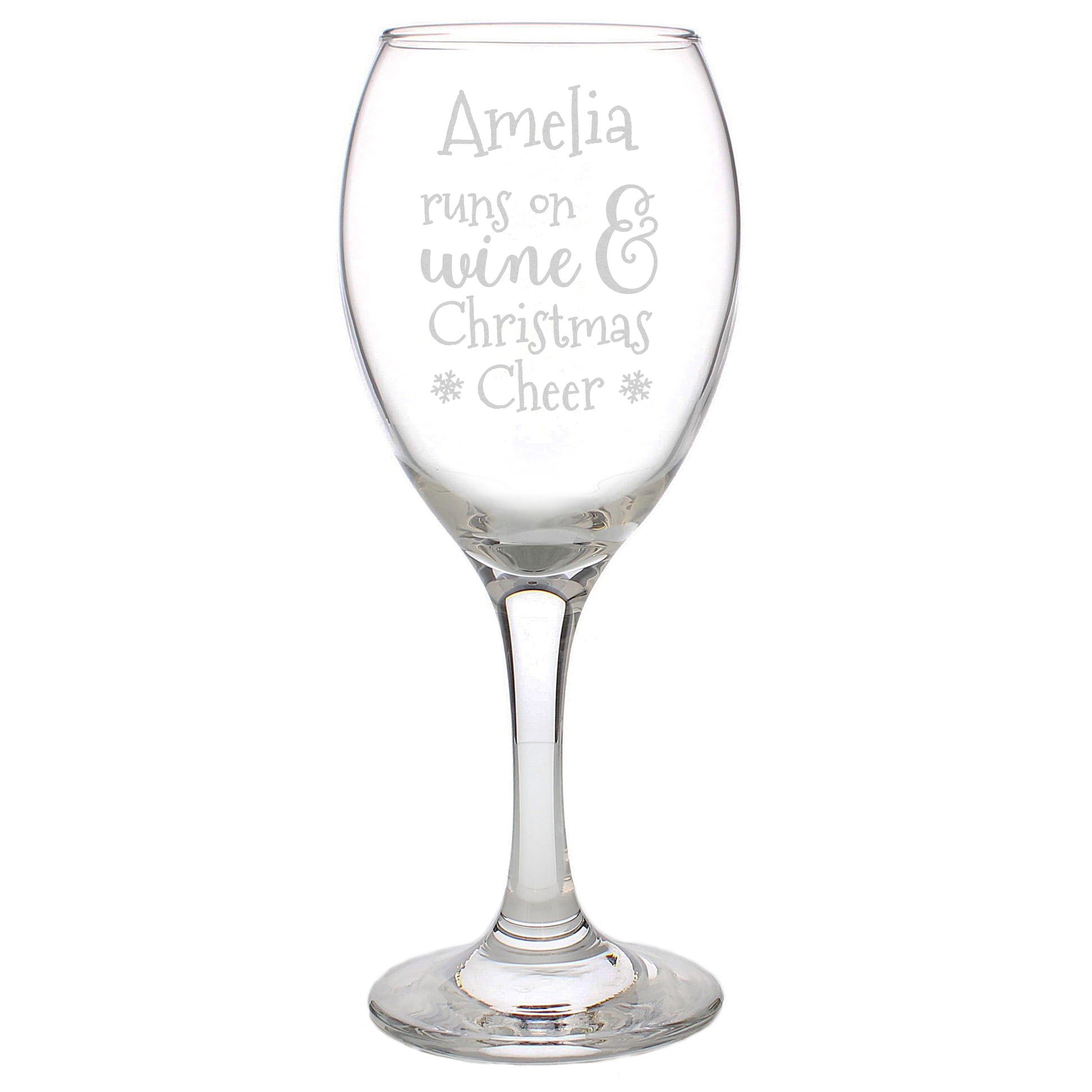 Personalised Runs On Wine & Christmas Cheer Wine Glass