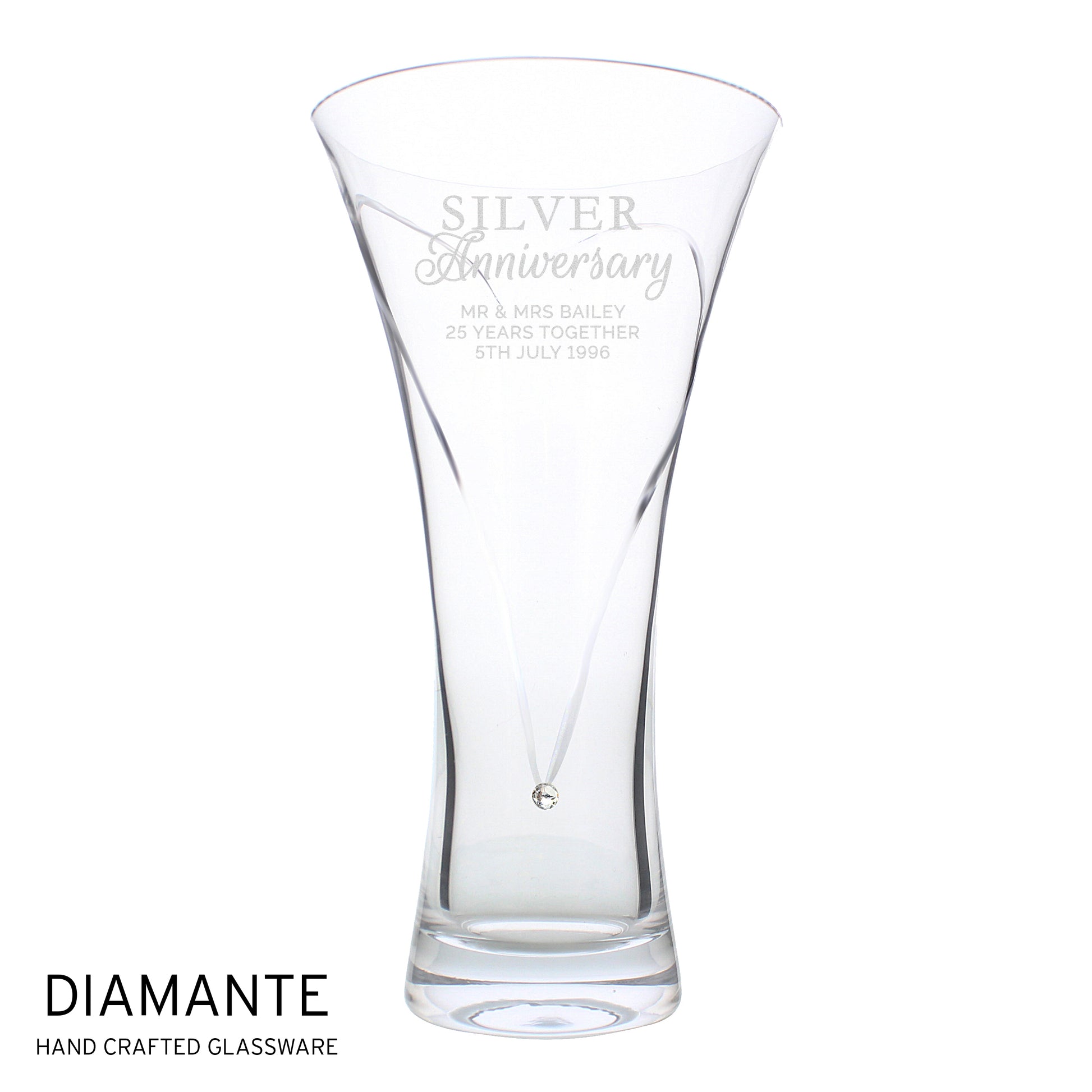 Personalised Silver Anniversary Large Hand Cut Diamante Heart Vase
