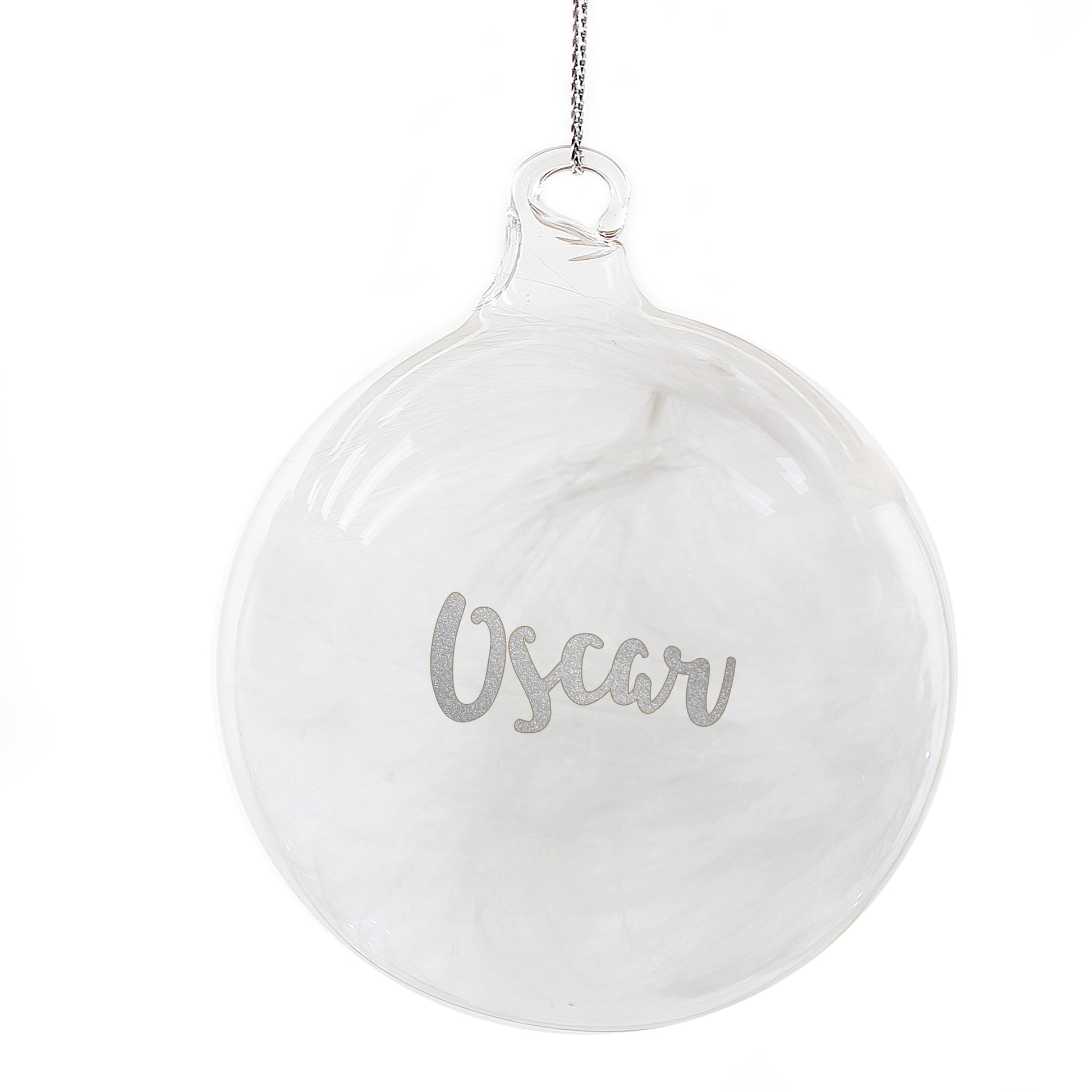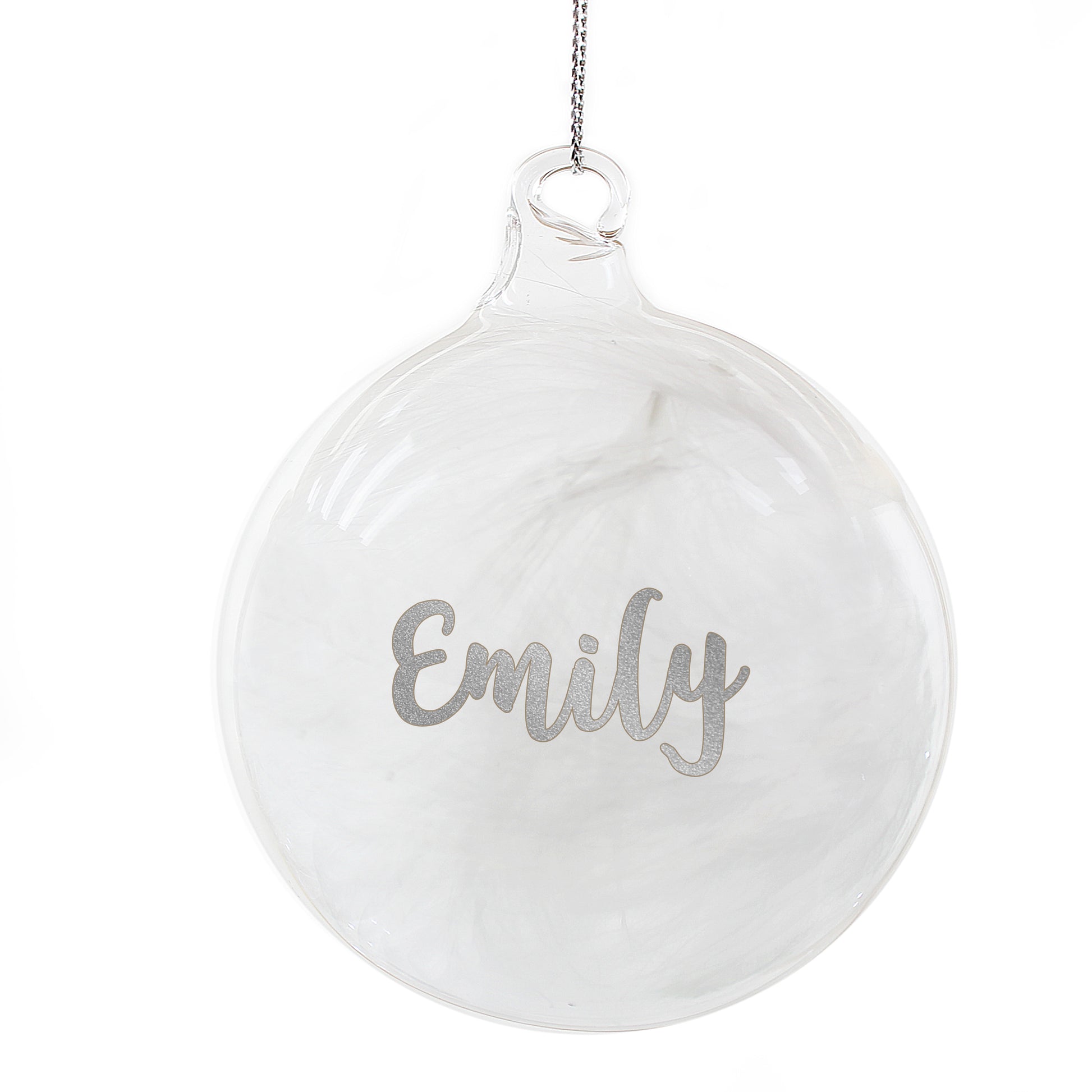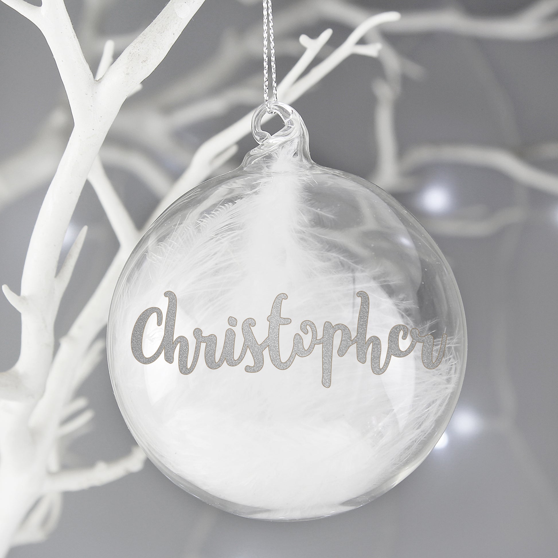 This Personalised Silver Glitter Name Only Feather Glass Bauble will make a stunning addition to the Christmas tree.