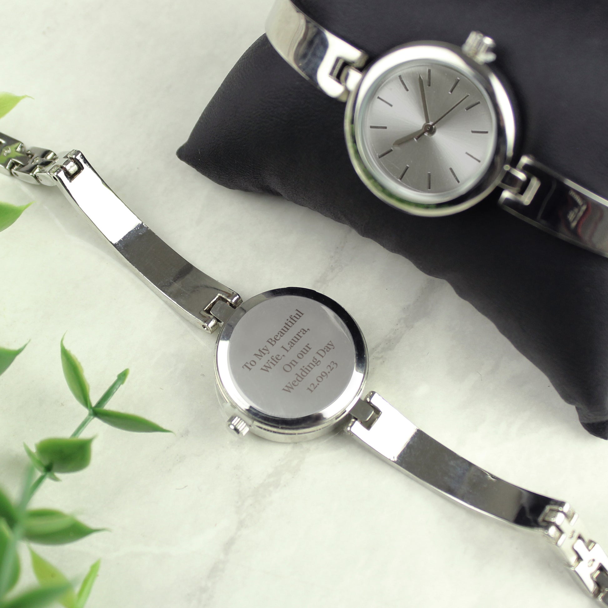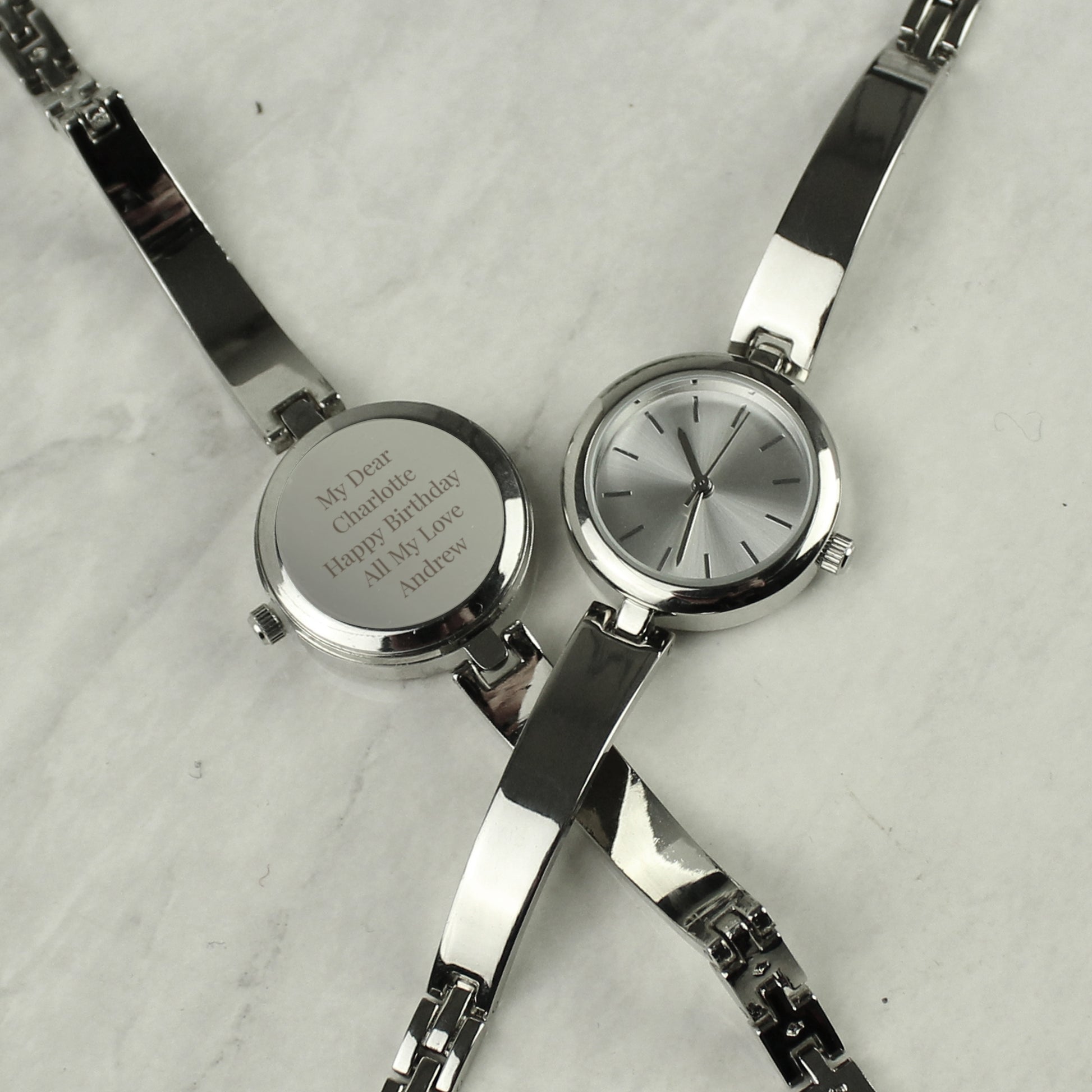 Personalised Silver Ladies Watch With Silver Slider Clasp