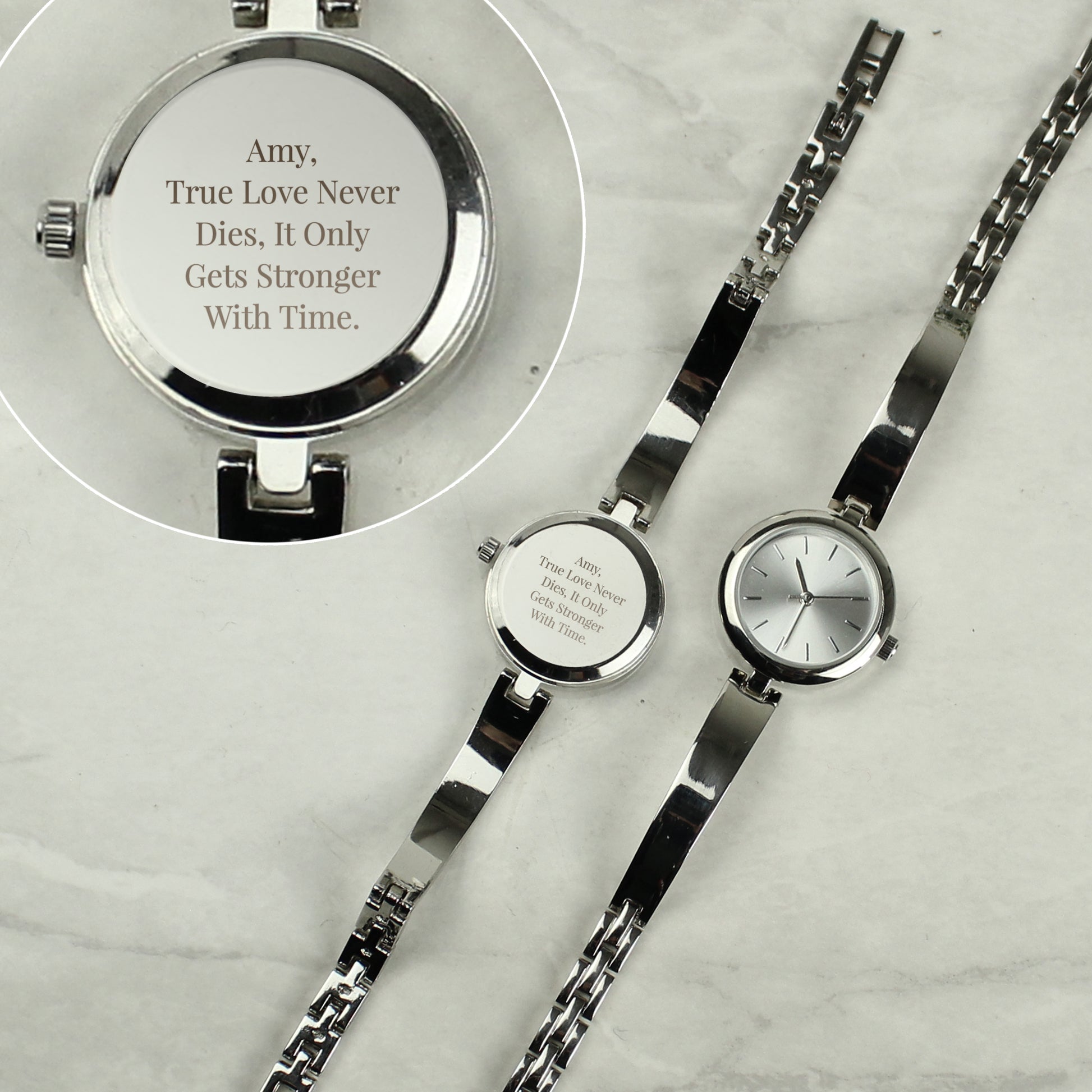 This elegant Personalised Silver Ladies Watch with a silver slider clasp is a perfect gift for that special someone.