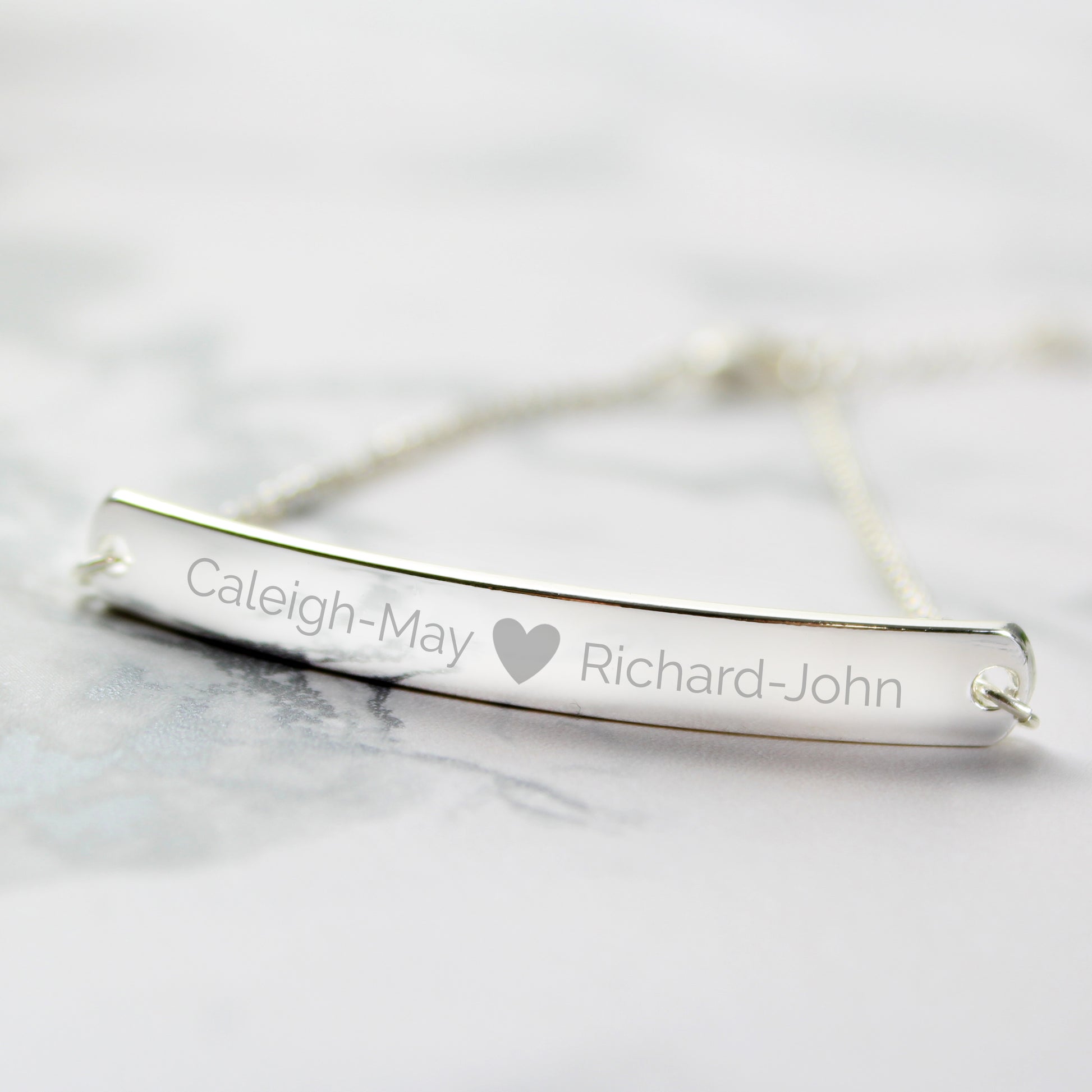 This bracelet can be personalised with up to 2 names, 12 characters per line.