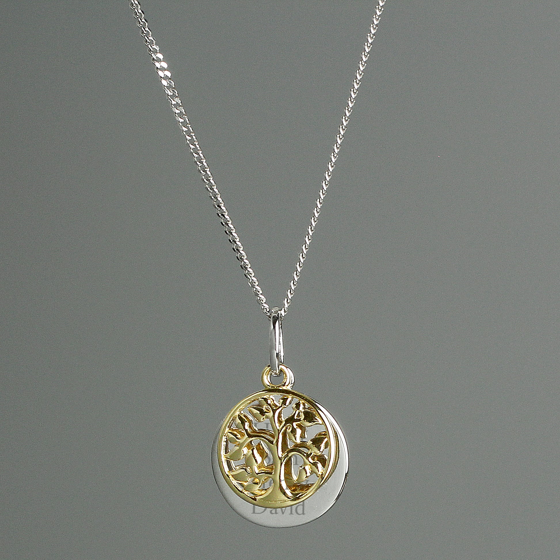 Personalised Sterling Silver & 9ct Gold Family Tree Of Life Necklace