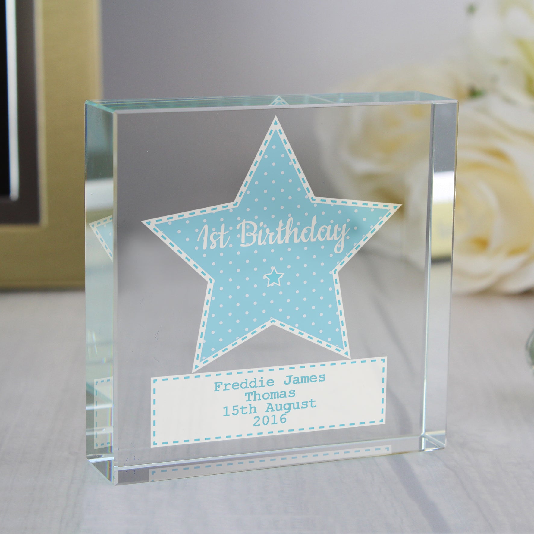 Personalised Stitch & Dot Baby Boy Crystal Token