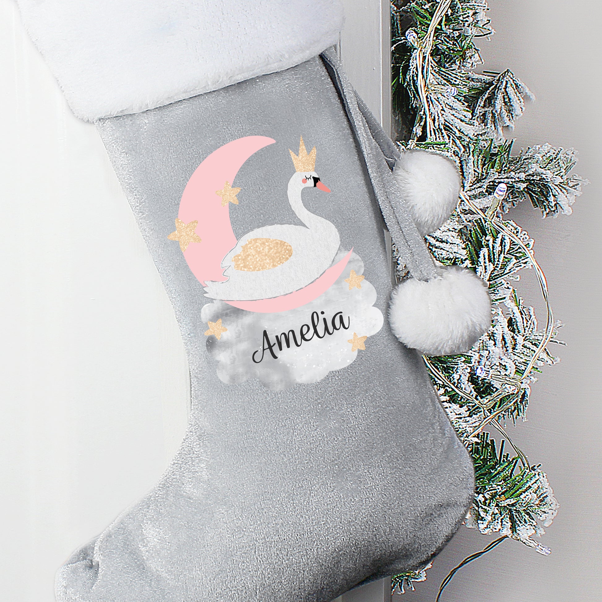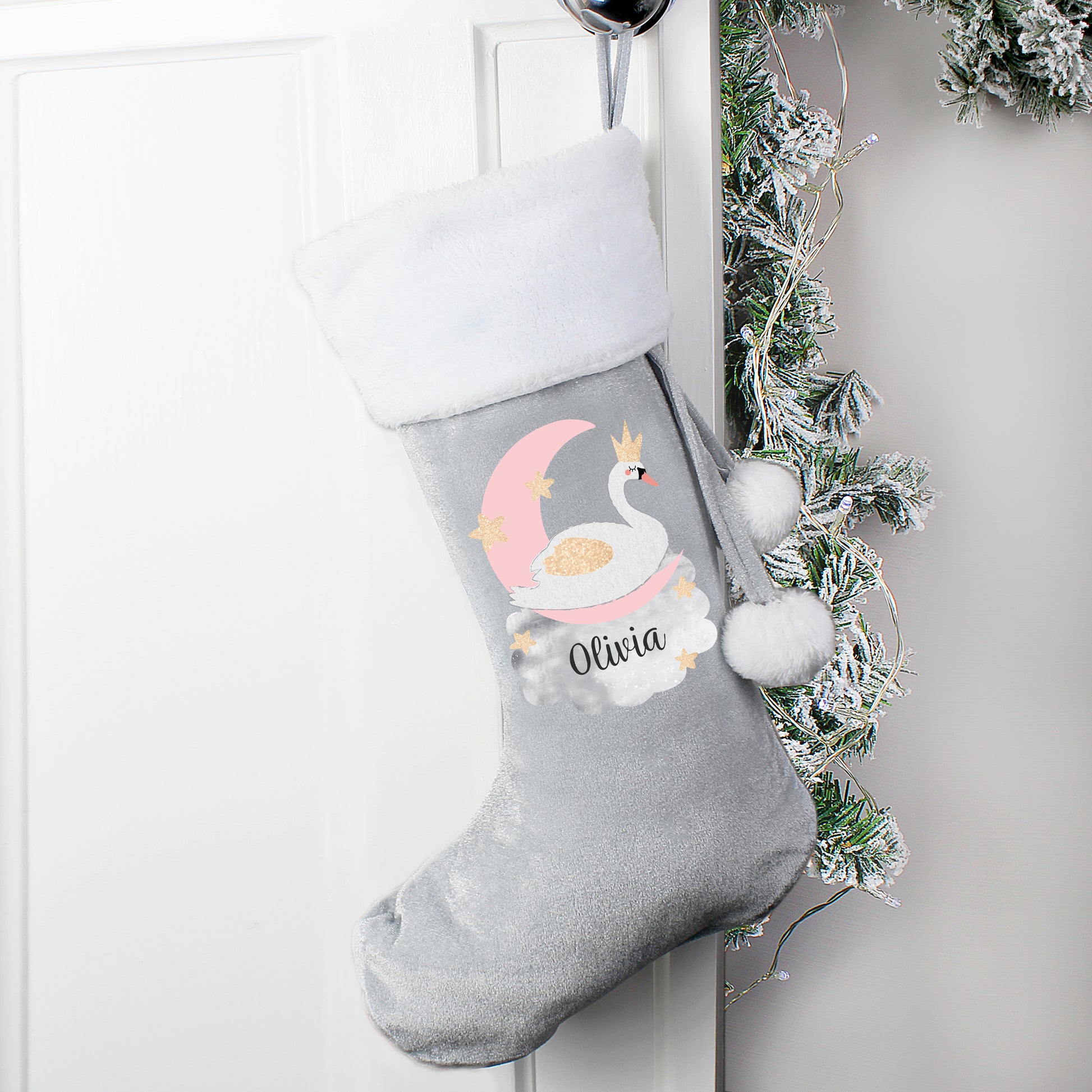Personalised Swan Lake Luxury Silver Grey Stocking