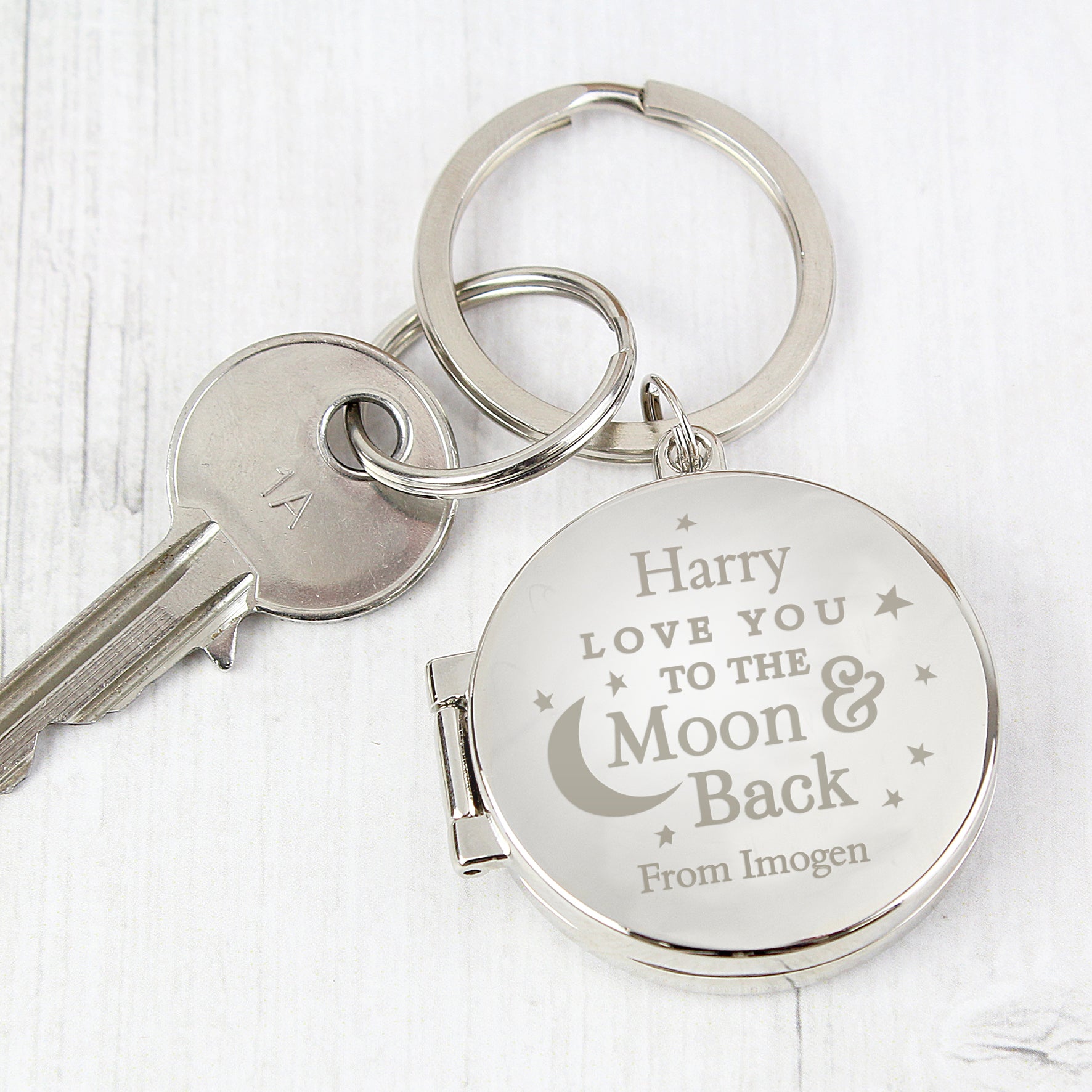 You can personalise this Keyring with a line of text up to 20 characters in length. The words 'LOVE YOU TO THE Moon & Back' are fixed. All personalisation is case sensitive and will appear as entered.