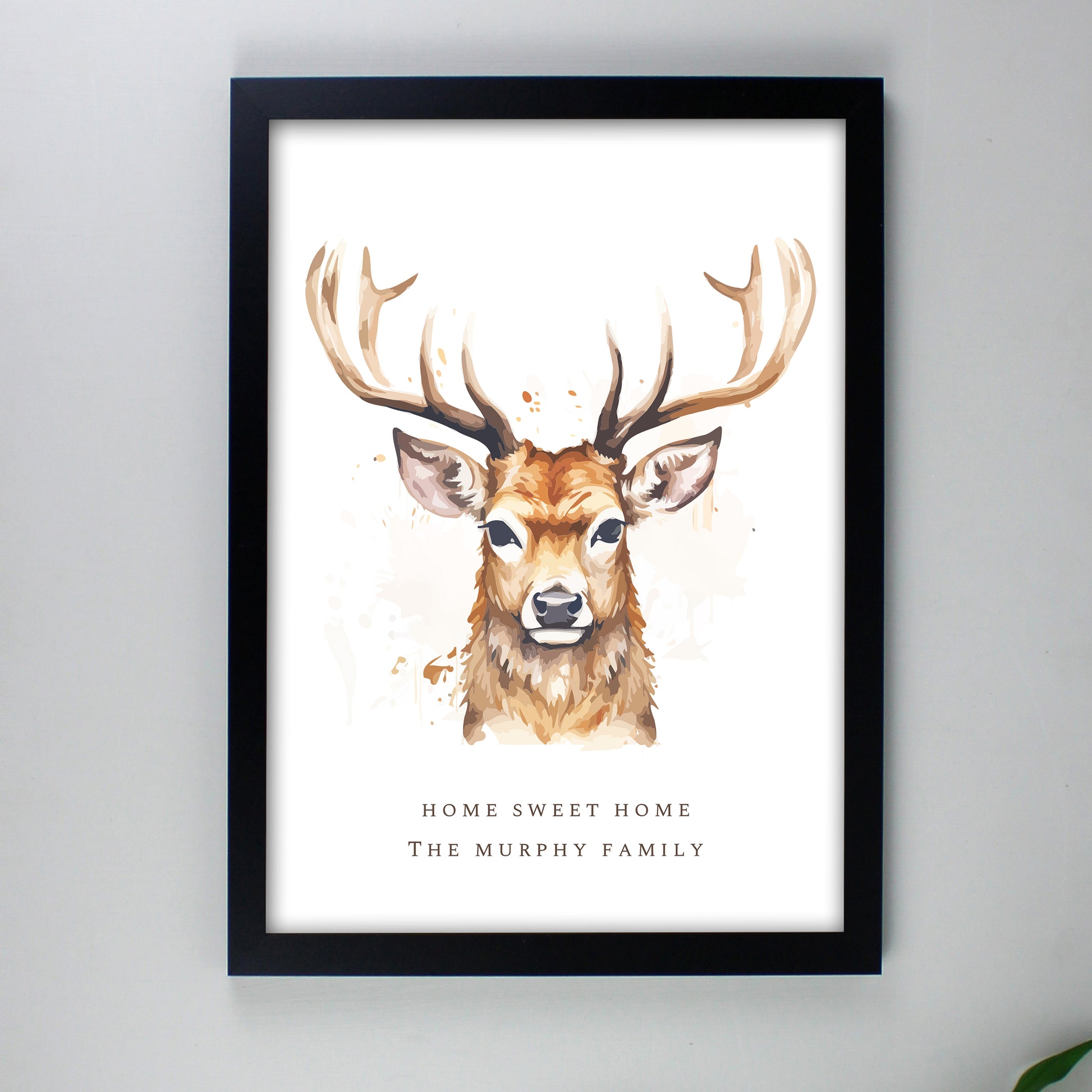 This Personalised Water Colour Stag A4 Framed Print is a stylish wall piece that will look the part hung in any home.