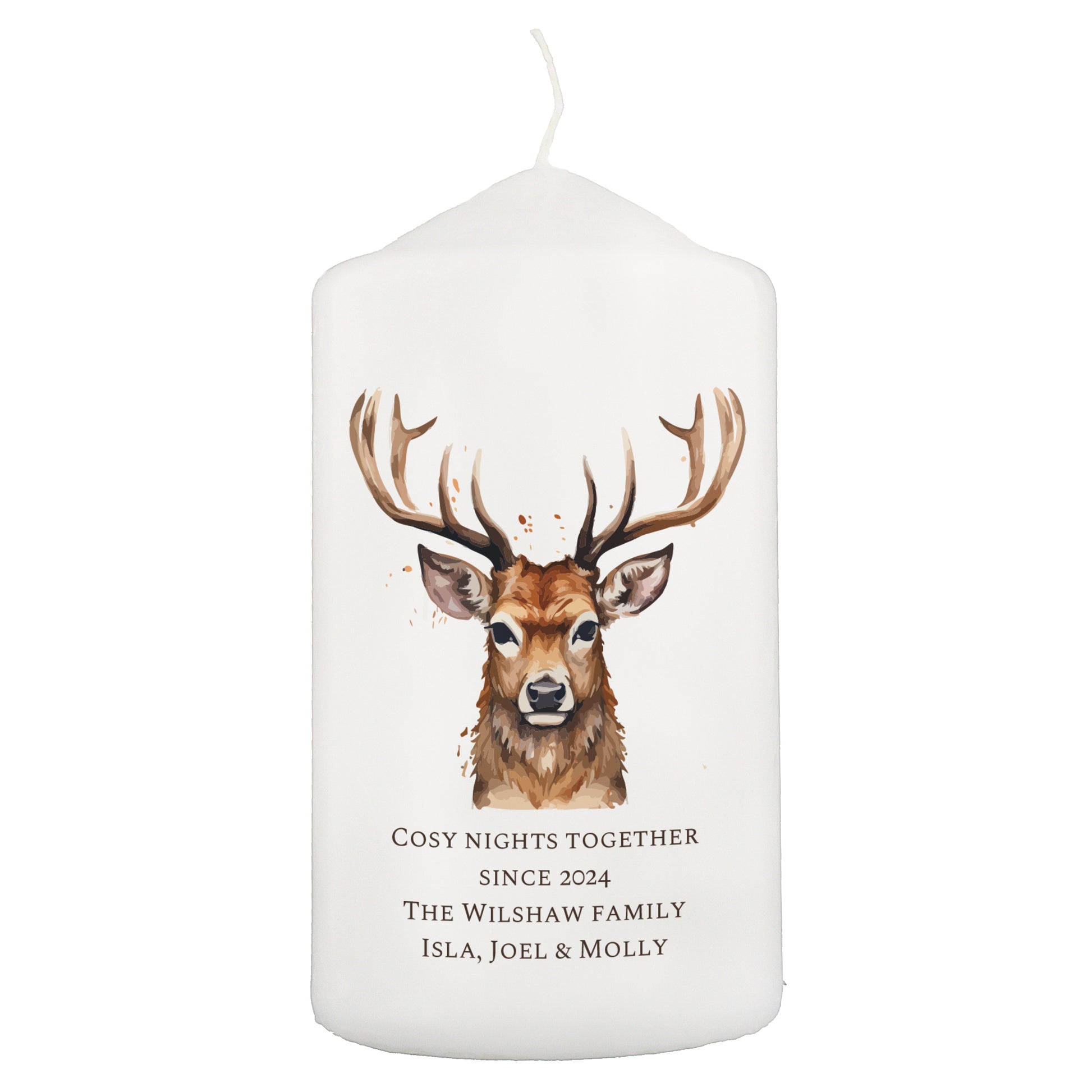 Illuminate your festive season with our exquisite Personalised Water Colour Stag Pillar Candle