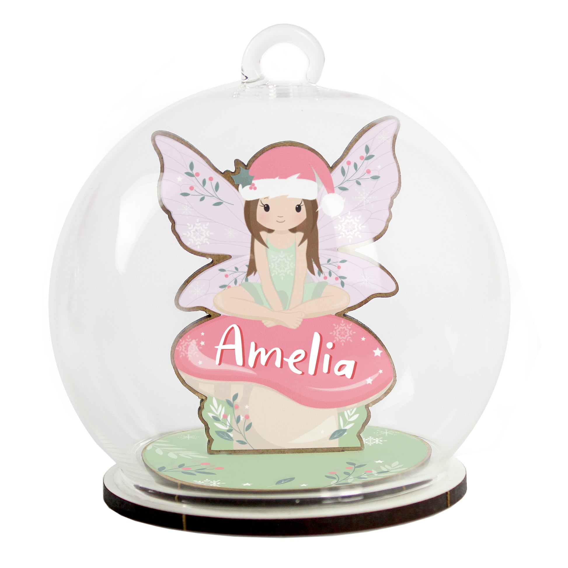 This Personalised Fairy Glass Bauble adds a personal touch to the Christmas tree. This bauble is made from glass with a wooden base and shape inside of the bauble.