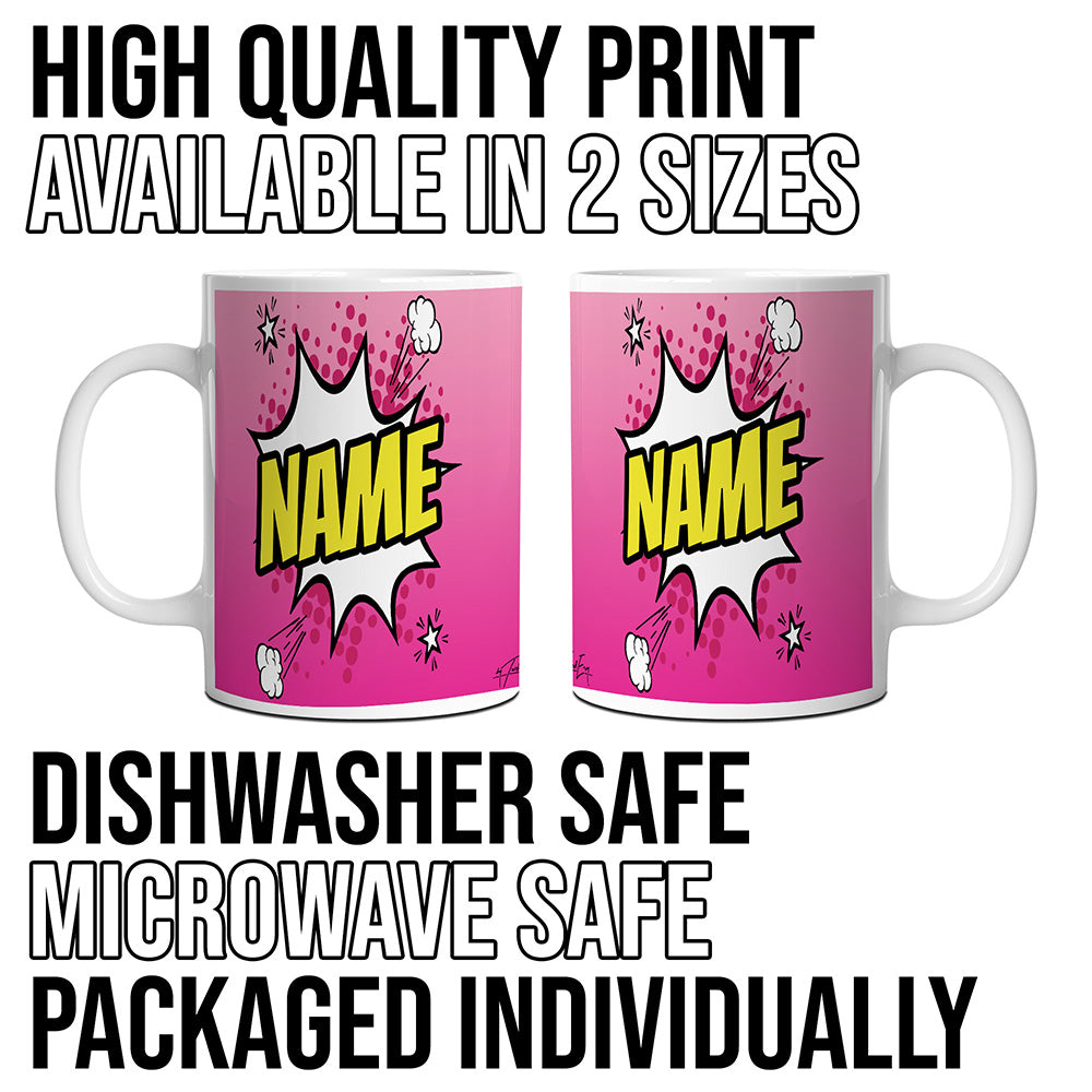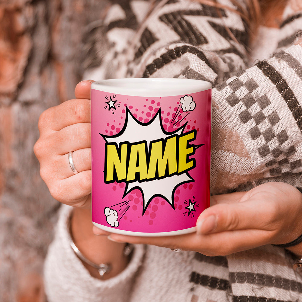 Pink Comic Book Style Personalised Mug