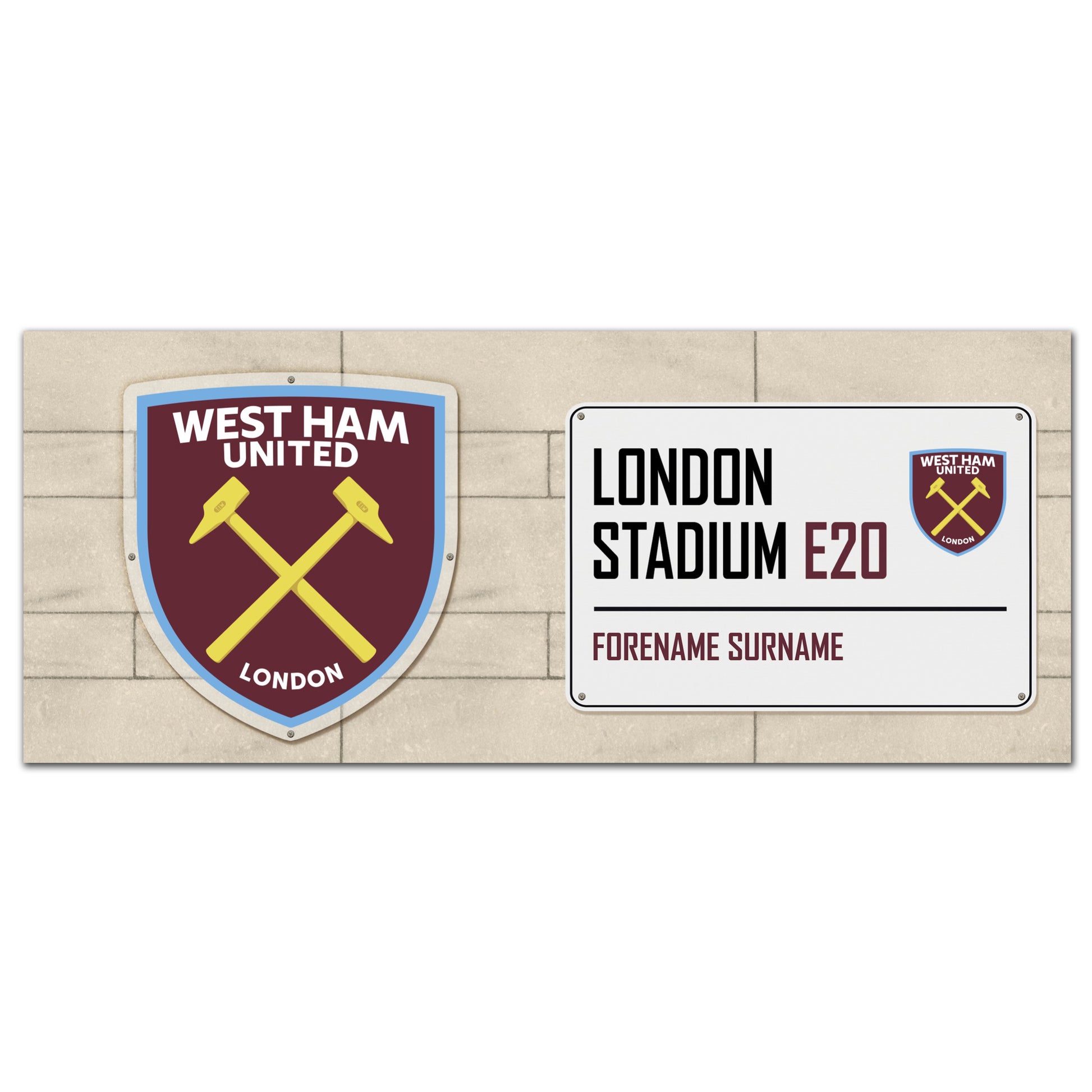 Our personalised Street Sign Mug is a fabulous present for any West Ham United FC fan and is approved and fully licensed by the club. We merge your chosen Forename and Surname onto the Stadium Street Sign design that any West Ham United FC fan will recognise.